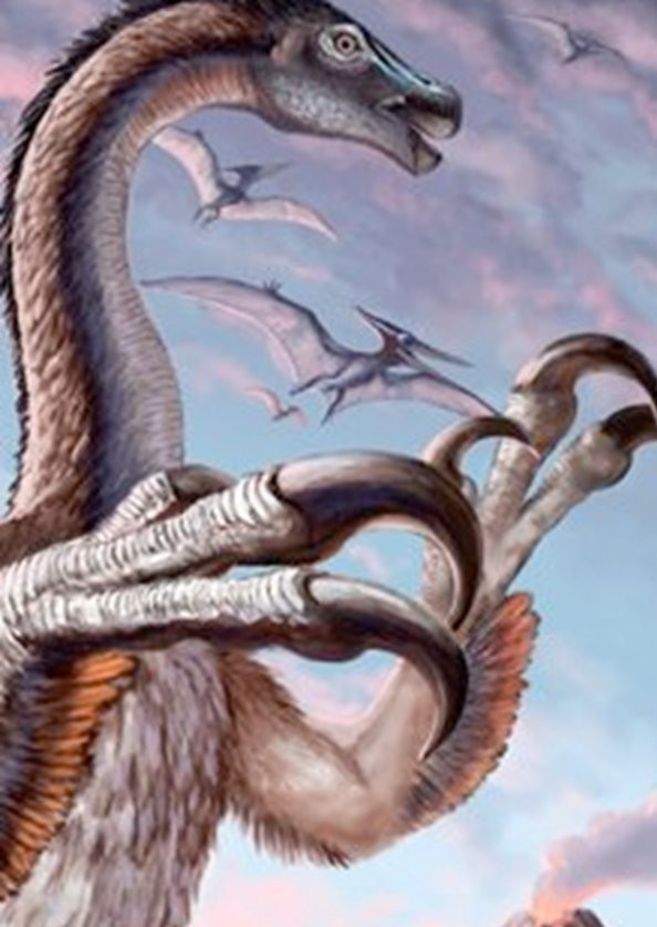 这种恐龙的唯一化石是一双手臂,这些手臂看起来像是属于鸟类动物,但它们有8英尺长。它的爪子使用是有争议的:一些人说它是用来撕碎大型恐龙的,另一些人则说爪子太钝了,所以它们被用作防御性武器。有些人甚至说恐手龙用它的巨臂爬树,尽管这个假设很少有人赞同。