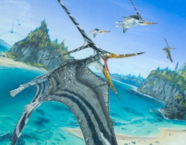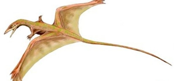 一种滑行爬行动物,后腿有两个“翅膀”,前腿有两个小的“翅膀”。一些科学家认为它与蛇颈龙有关,但它将翅膀倒转到腿上而不是手臂上,这一点令人怀疑。