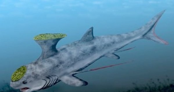 鲨鱼已经生存了4亿多年,虽然它们在整个化石记录中保持相对不变,但肯定有一些奇怪的特征,有一个铁砧状的背鳍,上面有小的刺,鳍可以用于求爱或防御。