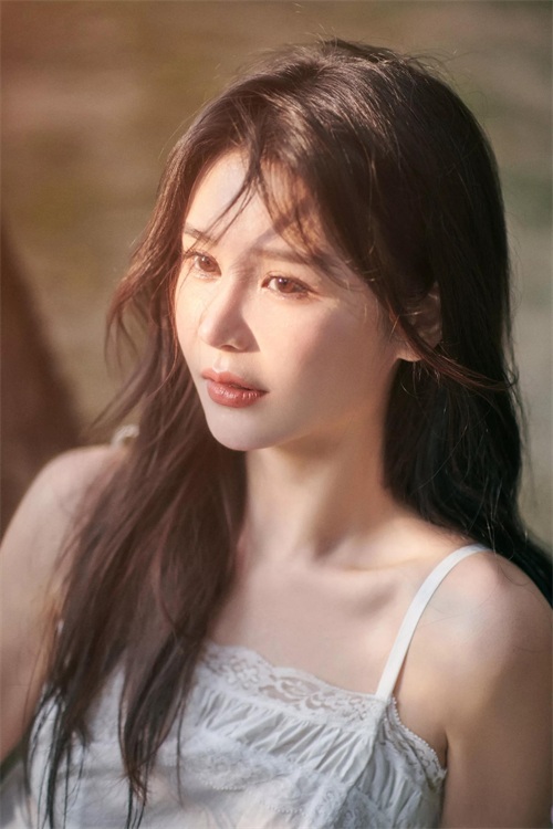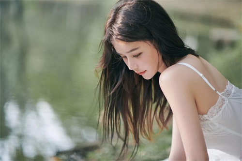 照片中,邱意浓一身“白色吊带裙”,性感迷人,画面唯美,犹如仙女下凡呀!