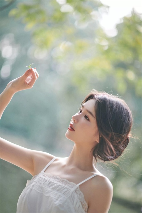 在阳光的照耀下,更突出她细腻的皮肤,光泽耀眼。