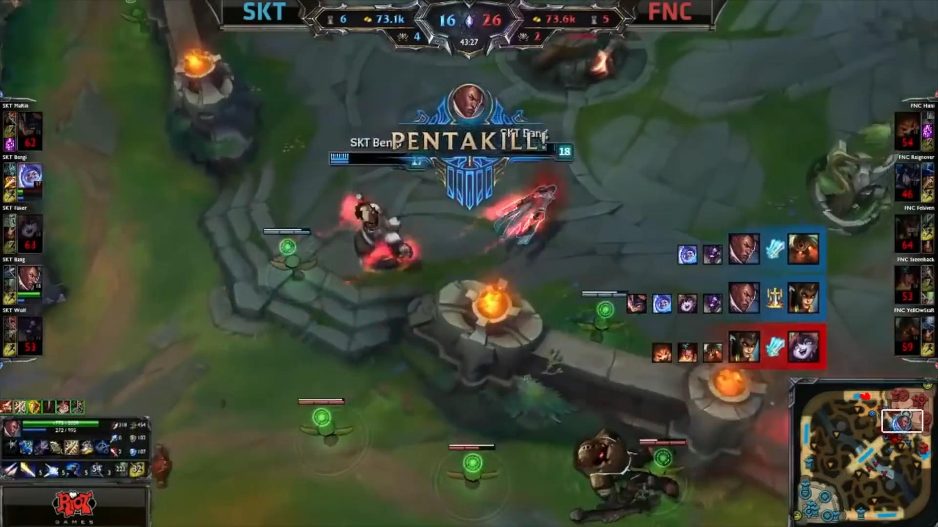 首先是2015 MSI季中邀请赛,小组赛SKT和FNC进行了一次交手,Bang选出了卢锡安,值得一提的是这场比赛SKT打野Bengi选出努努(老版努努的W可给队友加攻速和移速),中单Faker选出璐璐,基本上可以说是一套4保1的阵容,可见SKT对Bang非常信赖,而Bang也是没有辜负队友的信赖,一波卢锡安五杀引爆全场!
