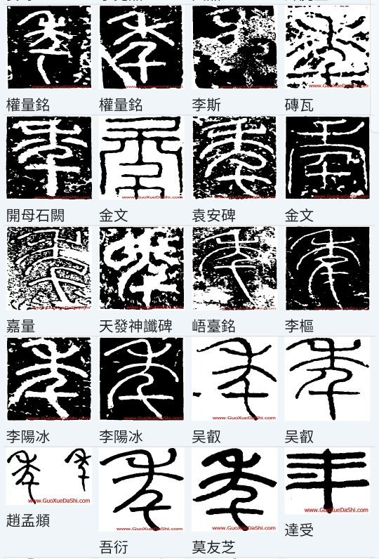 篆书的“年”字(下图),在下面的“人”上加了一横,变为篆书体的“千”字。所以篆书的年字是“禾”“千”两个字的上下组合。这个字和楷书的“季”字特别相似,千万别读成“季”。
