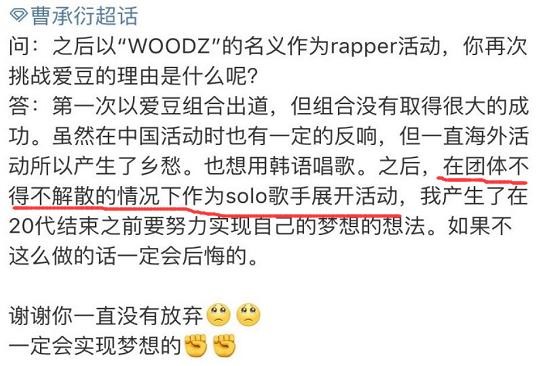 而近期UNIQ成员曹承衍在接受相关媒体的采访时,曾表示UNINQ在不得已的情况下解散,目前的各组员发展的情况其实也不算差。曹承衍在韩国男团选秀综艺中再次成团,虽然X1人气很高,但在中国的呼声并不高,所以后面的发展还是很让人担心的 。