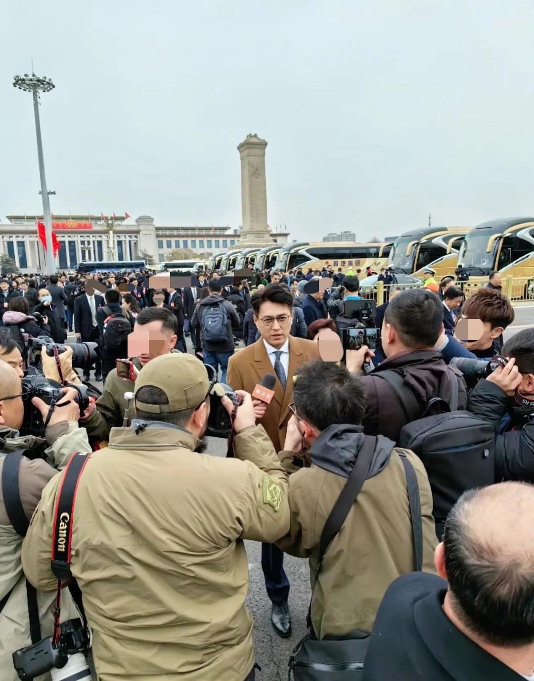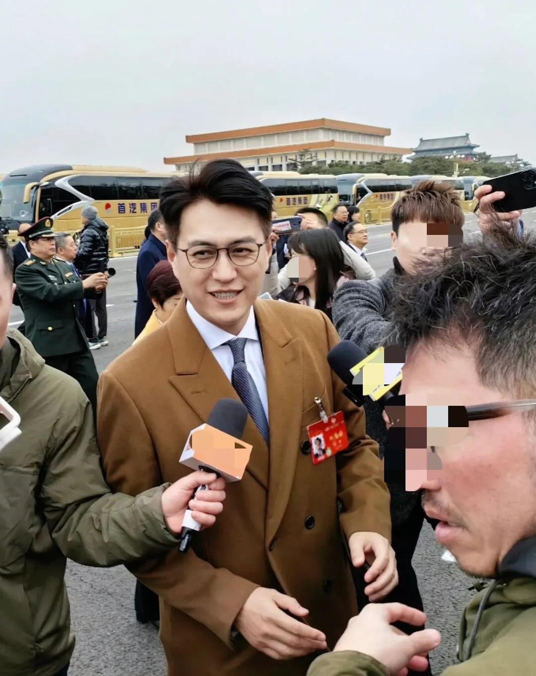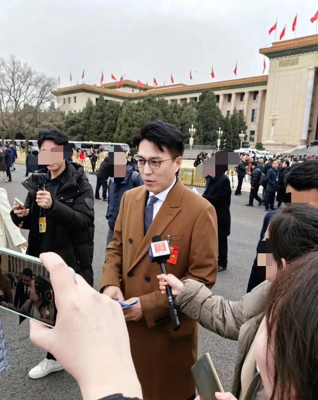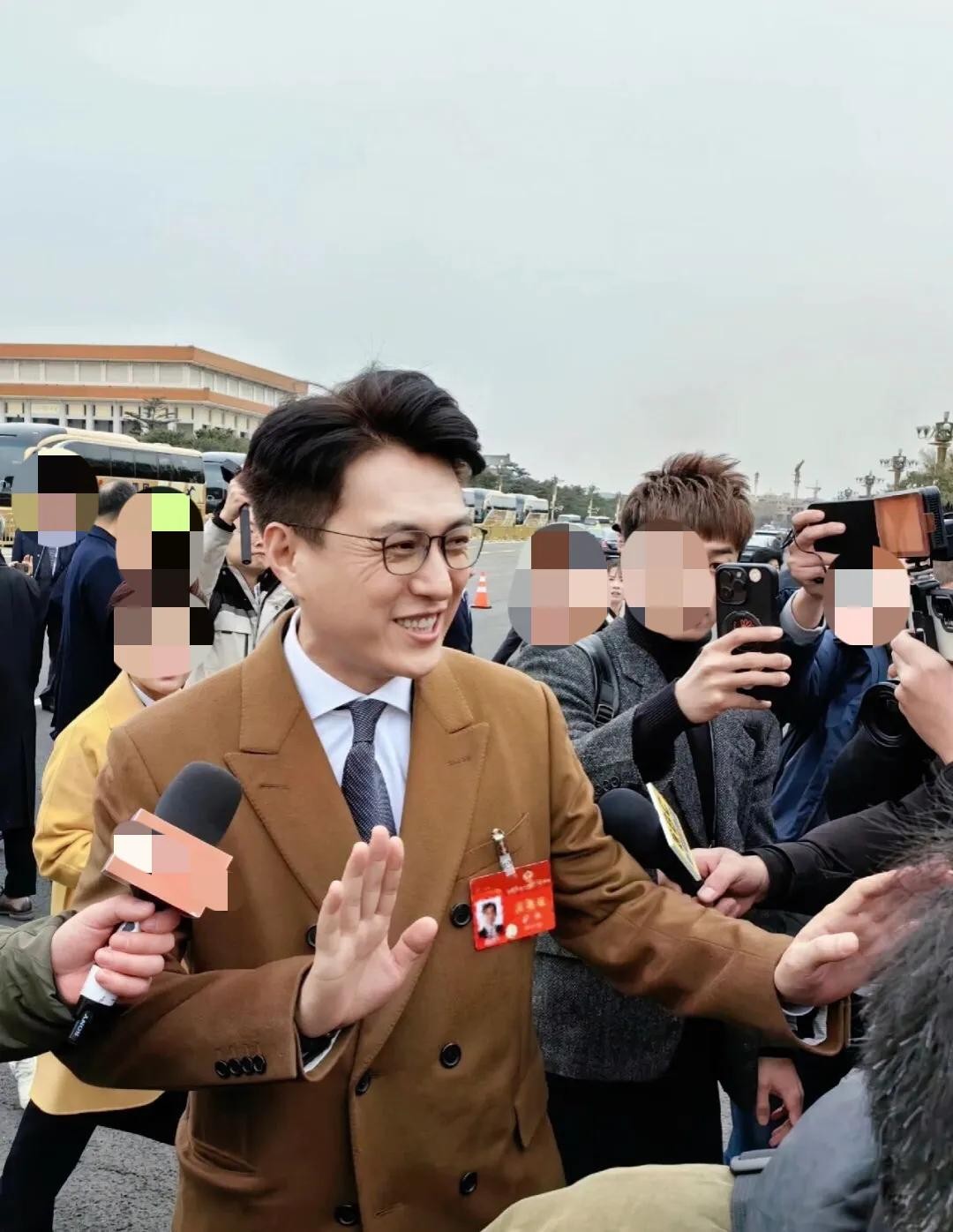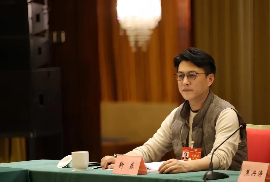 48岁的靳东作为政协委员亮相的会议的时候,身穿一件咖啡色的呢大衣外套,搭配白色衬衣黑色领带,佩戴镜框眼镜,在下车之后,引发了众多媒体以及粉丝的跟拍围绕。