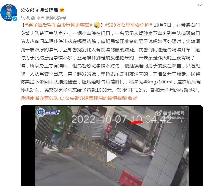 “自投罗网”!湖南一男子酒后驾车开进警营