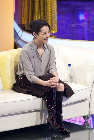 或者,你也可以直接挑选一件V领衬衫的样式。刘蓓正是选择了这样的款式,她巧妙的挑选了一件与自身气质更为相符的高级灰颜色,将她的成熟温婉魅力充分散发而出。搭配上英伦复古格子裙和性感漆皮高筒靴,令一身穿搭显得分外高级时尚。高筒靴建议娇小身材的女性要谨慎选择,上脚很可能会显的腿很粗很短。