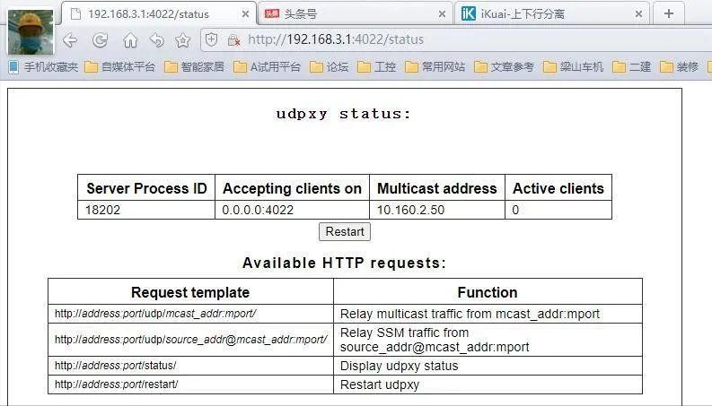 在电脑浏览器输入 http://路由器IP:4022/status,如果出现上面的页面说明设定成功了。