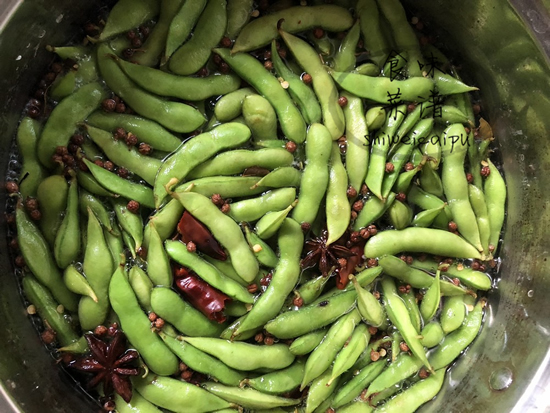 4、剩下汤水不要倒掉,可以继续煮 毛豆,或者花生吃,用汤汁浸泡一个小时更入味,如果是花生,需要踩裂,如果煮毛豆,记得修剪两头,方便豆子更入味。