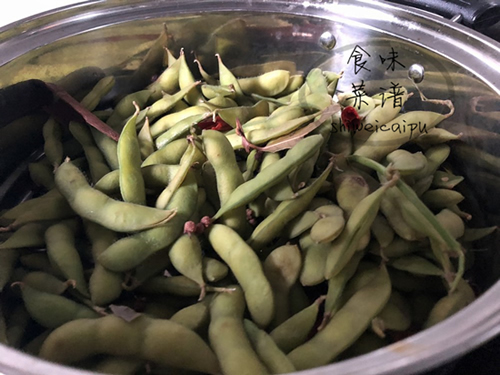 食材:毛豆、八角、桂皮、香叶、花椒、干辣椒、生姜