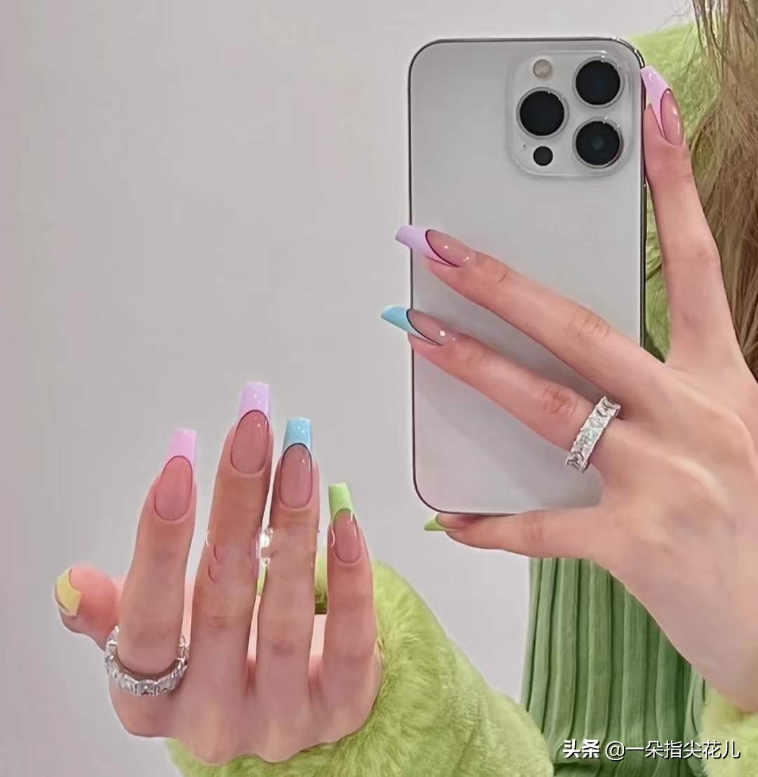 第五款:夏天到了,怎么少得了糖果色呢,撞色法式,少女夏日必备。