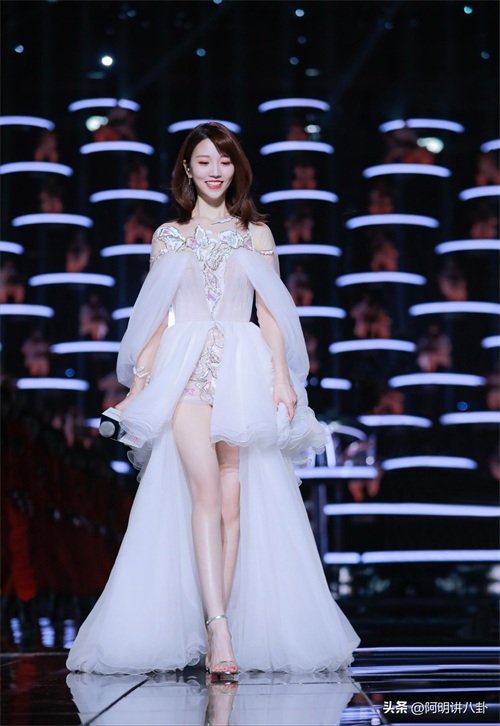 华丽的礼服,甜蜜的笑容,瘦而不柴的完美身材,让人眼前一亮,她的美好在于身上的那种至纯的美感,如梦似幻,让人看一眼就在心中反复琢磨。