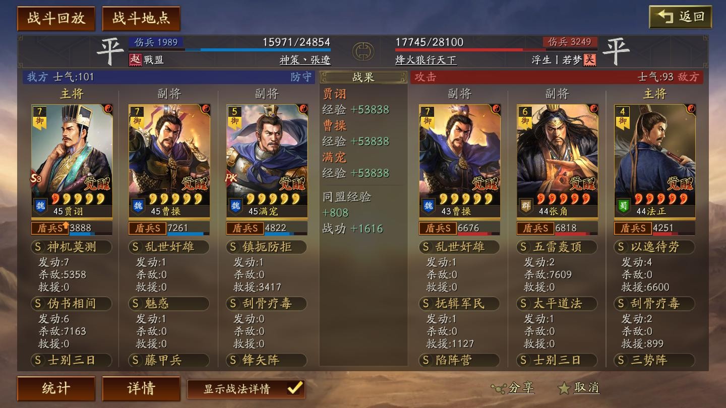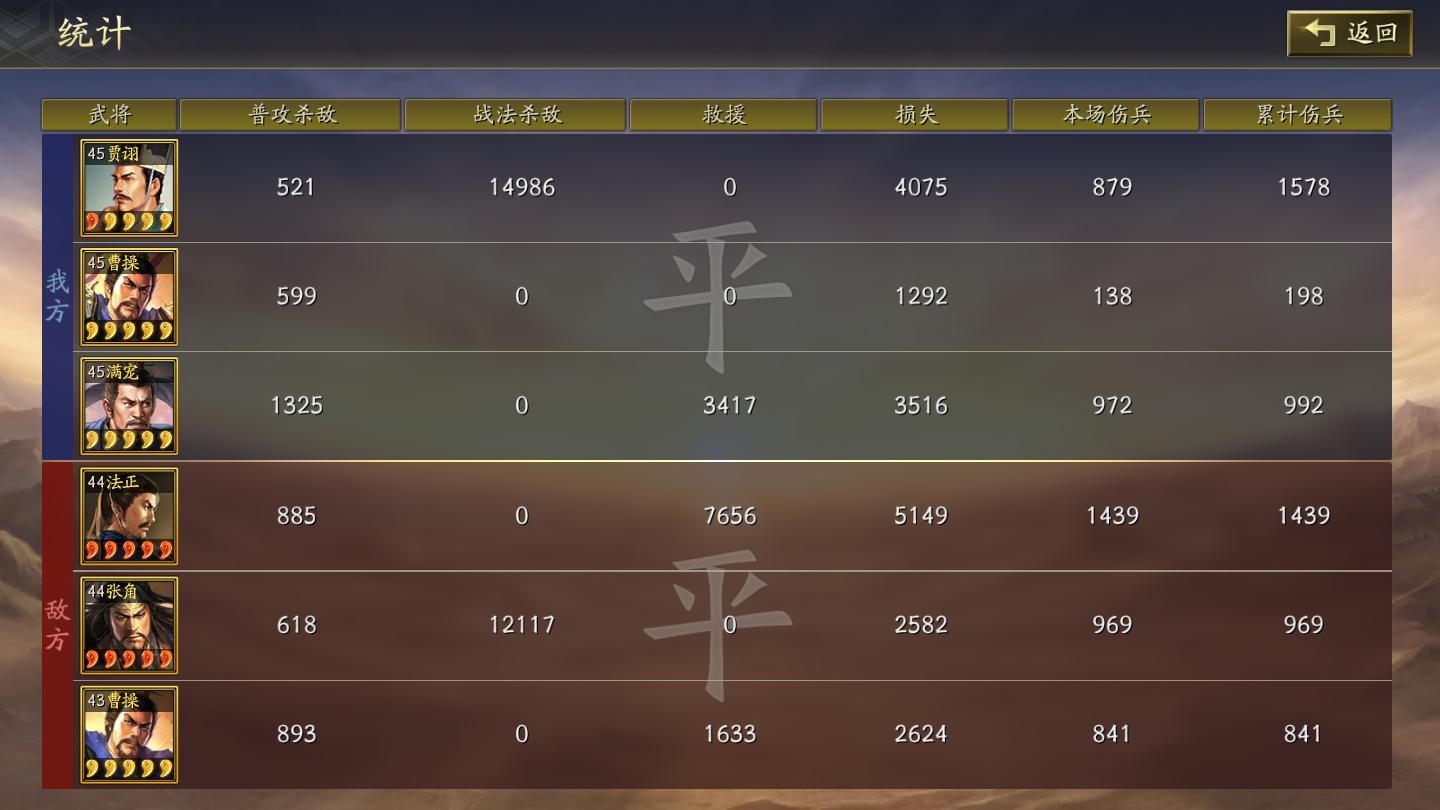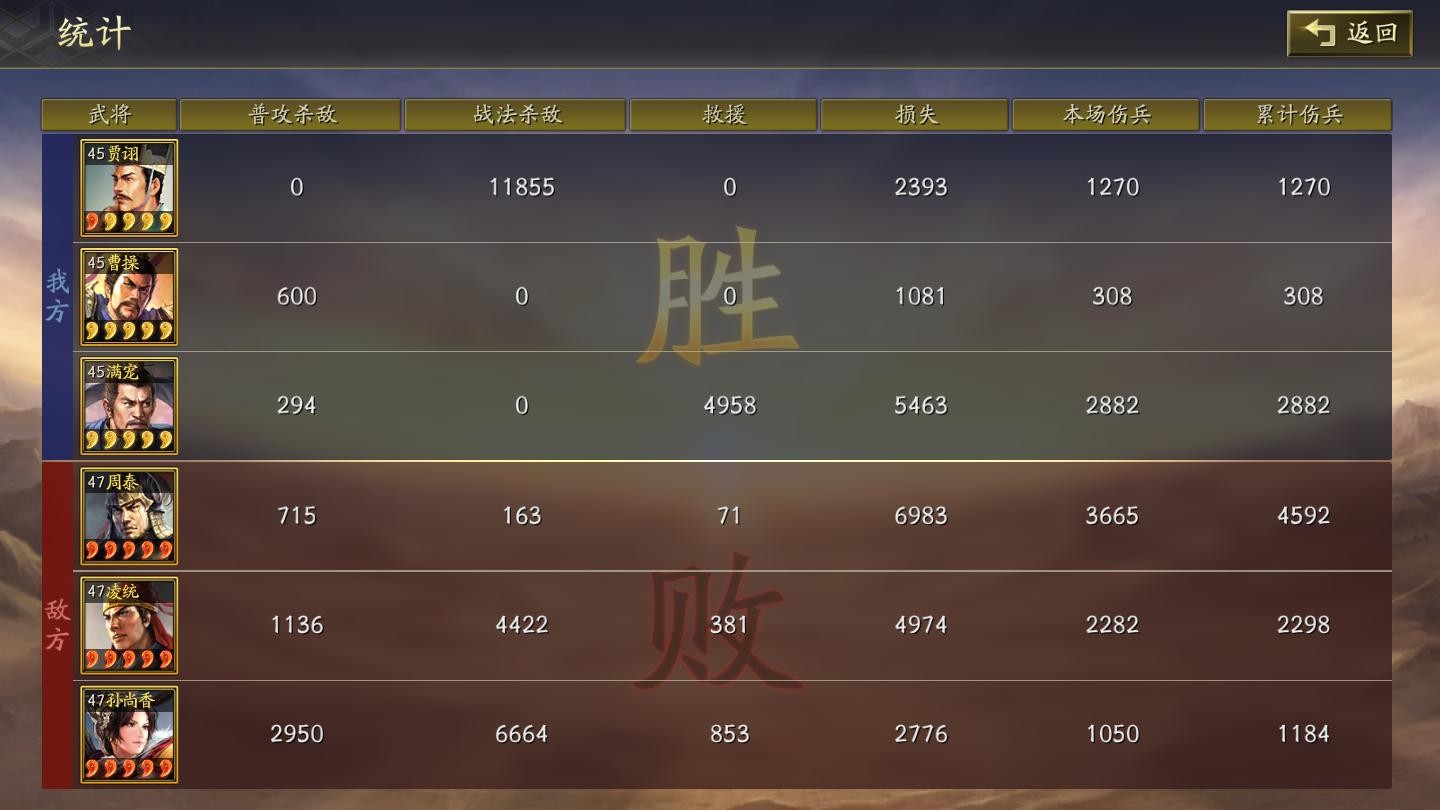 还有这场战斗贾诩对战司马懿,两个队伍都是标准配置,可以看出我方优势明显!