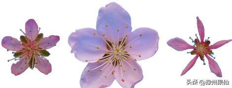 桃盛花期花朵的大小,蔷薇形花径大于铃型。蔷薇形花径介于3.0~5.5cm之间;铃形直径介于1.5~3.0cm。