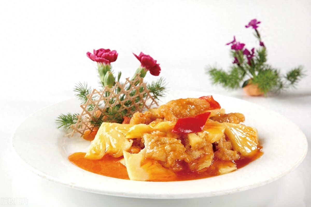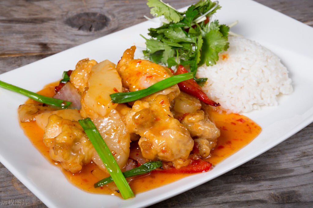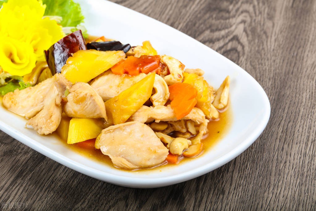 菠萝鸡是一道融合了中式和西式元素的菜品,味道酸甜可口,深受人们喜爱。