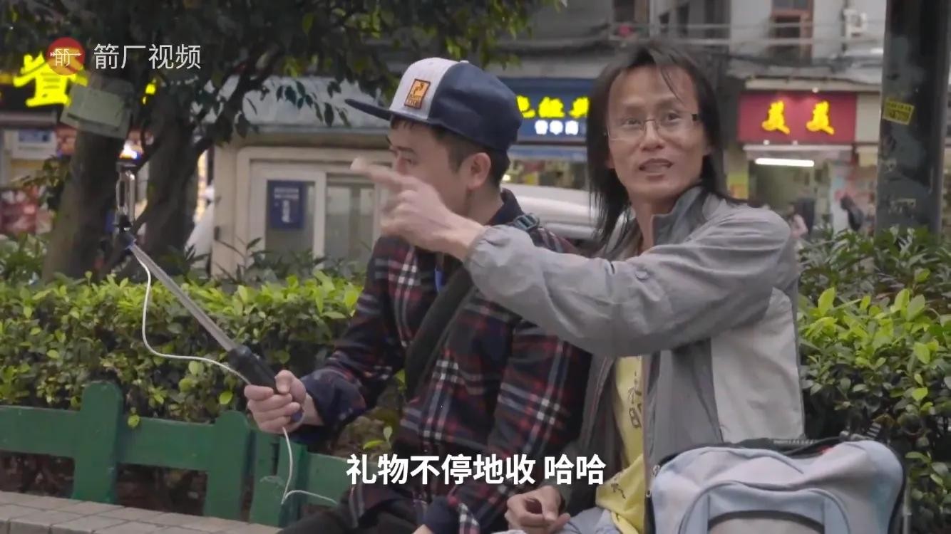 他游走于大街小巷,一个人,一把话筒,一个音响,给大众送去欢笑。