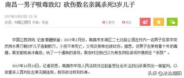 2017年,江西南昌东湖区发生了一件人神共愤的案件,犯罪嫌疑人先是用水果猛割母亲的颈部,然后又拿厨房的菜刀砍伤前来阻止自己的父亲,如果不是其叔叔赶来,救下其父母逃离现场,两人性命难保。这名犯罪嫌疑人姓左,是一名吸冰毒多年的无业游民,这天因为连日多次吸食,又玩了通宵的游戏,产生了严重的幻觉,以为自己在游戏中,于是拿起家里的水果刀开始疯狂“杀怪”行为。