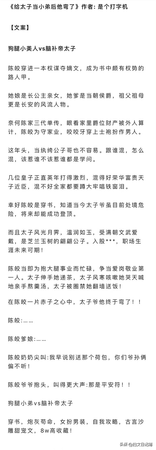 2、《给太子当小弟后他弯了》作者: 是个打字机