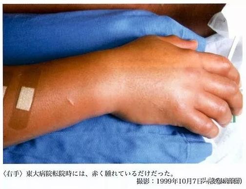 随着时间的推移,大内久的病情急转直下,皮肤大面积脱落,身体迅速脱水,肌肉开始腐烂,他如同一个被慢慢剥开的橘子,血肉模糊,惨不忍睹。