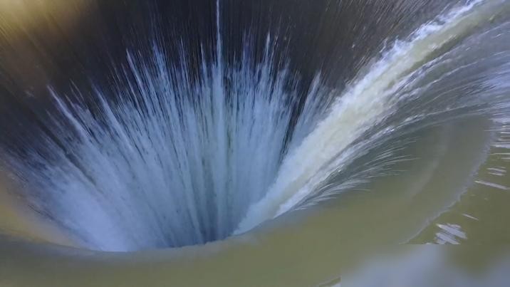 同时漏斗状的设计,方便了光荣洞的建造,并且可以让坝顶上产生一个类似于环形的流动,这种流动便是一种环形旋涡。