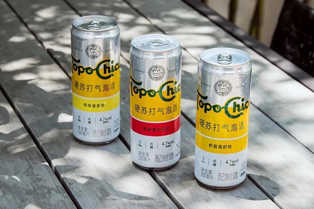 今年6月,可口可乐官宣称在中国推出首款含酒精饮料——托帕客(Topo Chico)硬苏打气泡酒,这是一款以低酒精度(4.7%vol)、低糖、零脂肪为主要卖点的入门级酒精饮品。