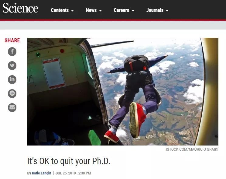 对于读博“过载”的同学,Science推荐了一个直接了当的选择《It’s OK to quit your Ph.D.》。