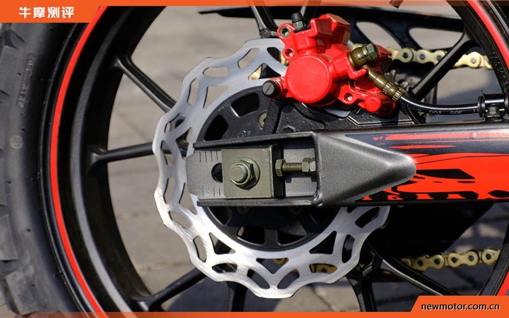 制动方面,前后盘式刹车,前盘搭配双活塞卡钳,后为单活塞卡钳。