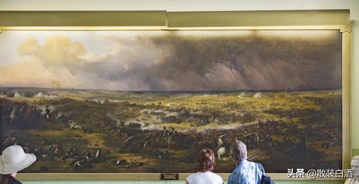 桑赫斯特皇家陆军学院惠灵顿厅的油画《滑铁卢战役》