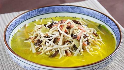 大煮干丝主要流行于江苏扬州地区,又被称为“鸡丝煮干丝”,也是一道有着浓厚地方特色的名菜,这道菜最为讲究的是刀工和火候。