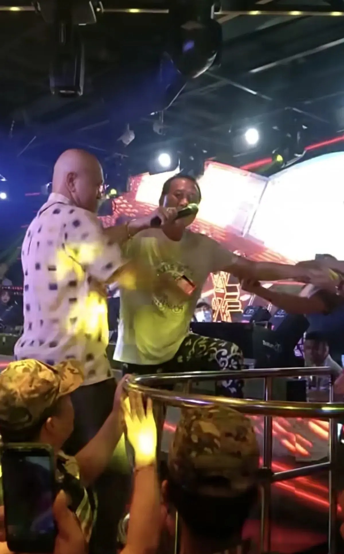 但是说他落寞吧,他的手腕上还有胳膊上都带有金手镯和戒指,可如果说飞黄腾达吧,这么大年纪了,孩子也都长大了但还得整天接商演挣钱,一点辉煌的影子都看不见。