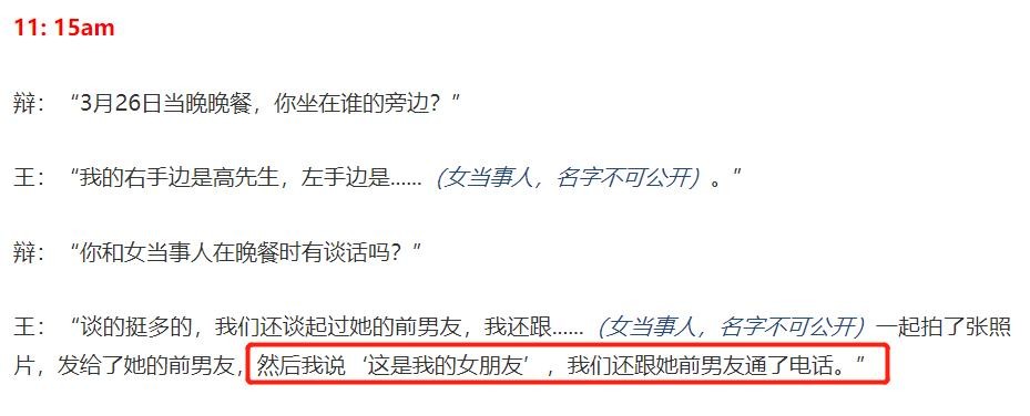在庭审现场王晶再回答辩方律师问题时,还暴露了一个细节,那就是女受害人发现与王晶在微信中有一个共同好友,于是在王晶手机中找到了这个人,而这个人正是女受害人的前男友。