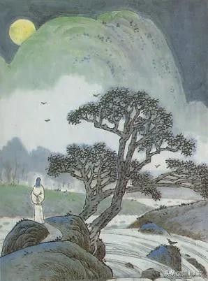 【诗意翻译】寂无人声,芬芳桂花,轻轻飘落。青山碧林,更显空寂。明月升起,惊动几只栖息山鸟。清脆鸣叫,长久回荡空旷山涧。