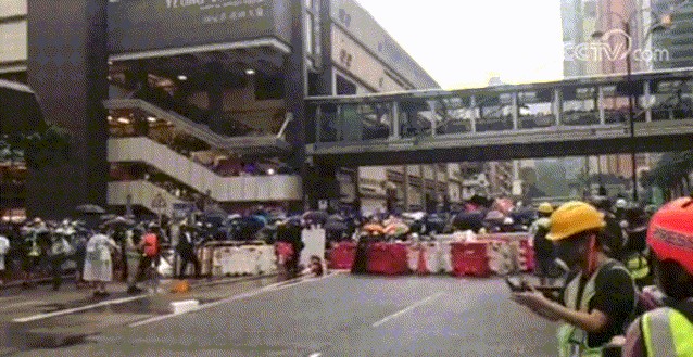 这时,一名站在最前方举着示威牌的女子,随时有被砖块砸到的危险。警察见状,立即冒着暴徒的“砖块雨”冲了上去,将她拉到路边。