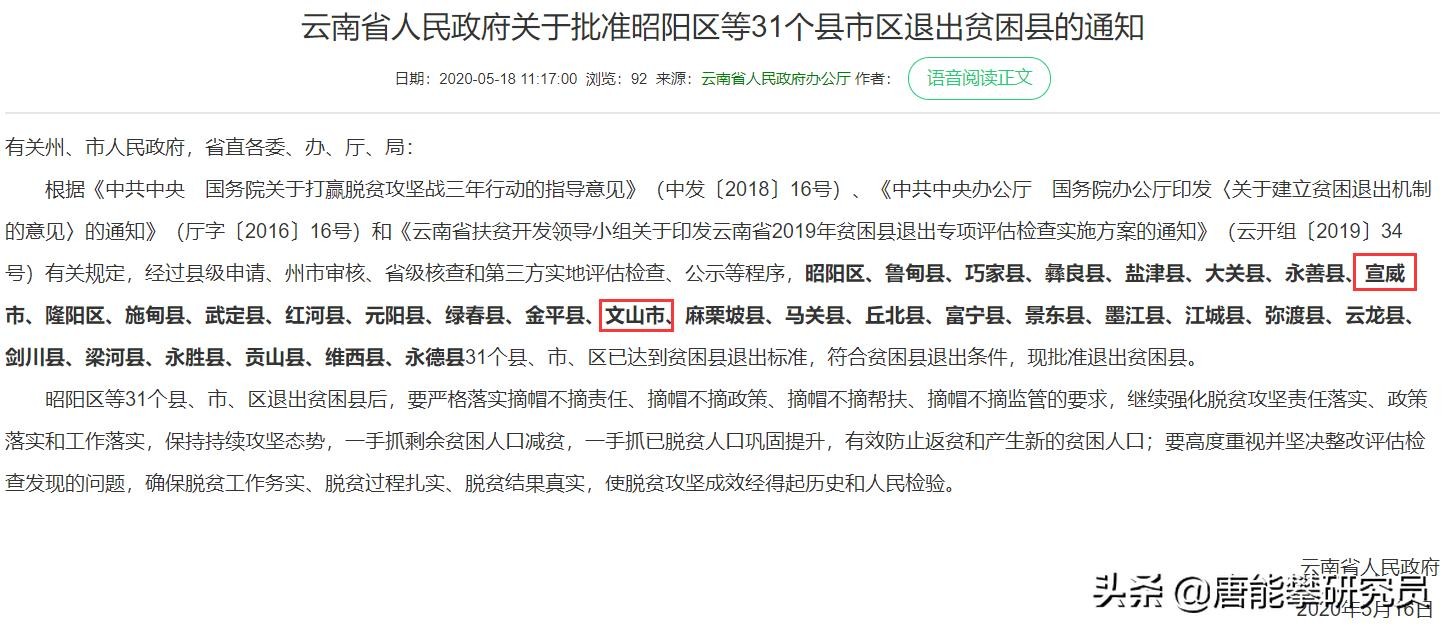 第二是5月17日省政府发布通知批准31个县市区退出贫困县,里面赫然包括宣威市,作为仅有的两个县级市之一。