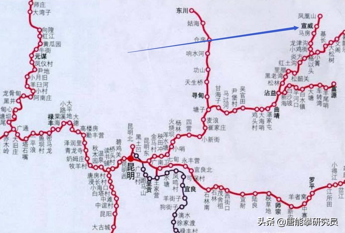 从下面的铁路图可以看出宣威曾经处于云南铁路的末梢。