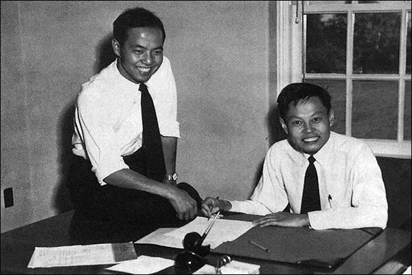 1964年,在美国纽约州的布鲁克海文实验室,丁肇中与物理学家A•J•斯图尔特•史密斯合影