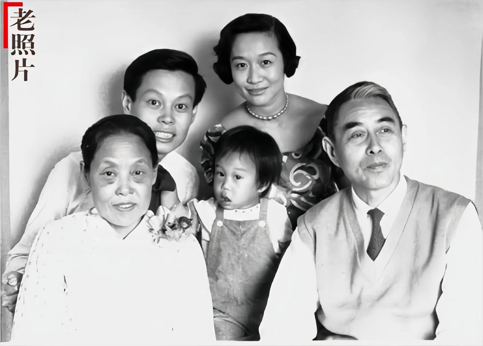 丁肇中10岁时,与父母弟妹在照相馆中合影