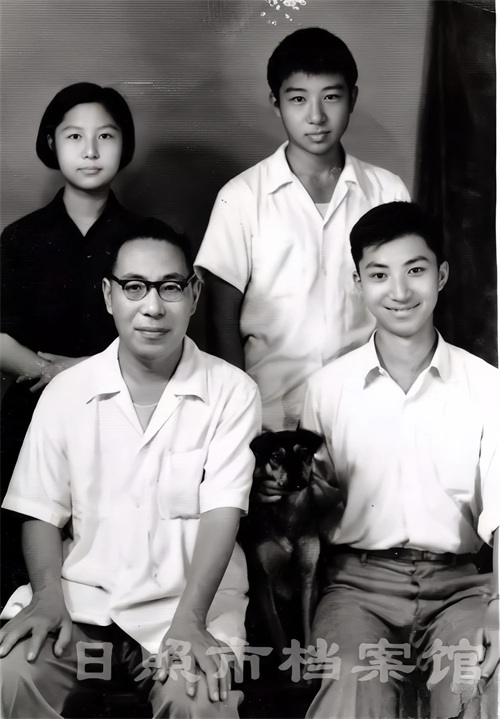 1955年,丁肇中(前右)与父亲丁观海(前左)、弟弟丁肇华(后右)、妹妹丁肇民合影