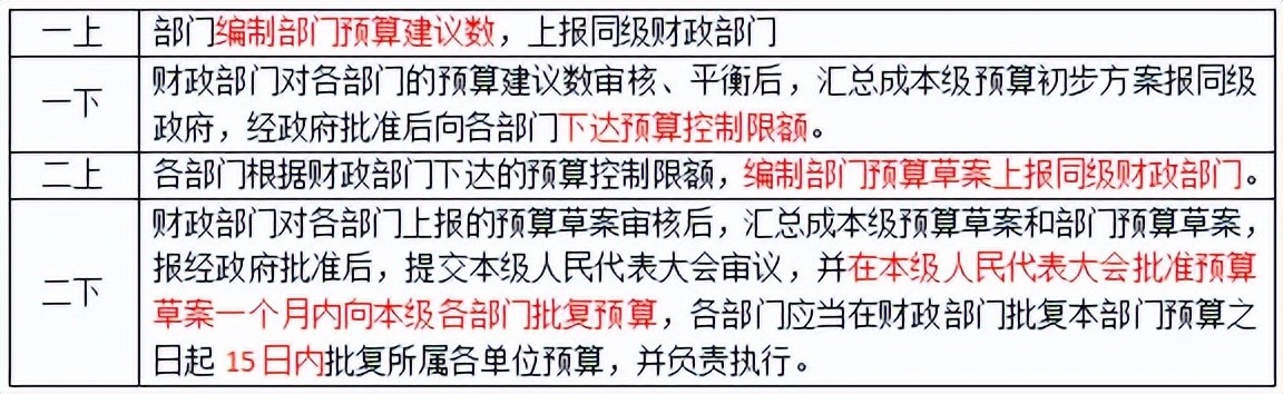 部门预算采取自下而上的编制方式,编制程序实行“两上两下”的基本流程。