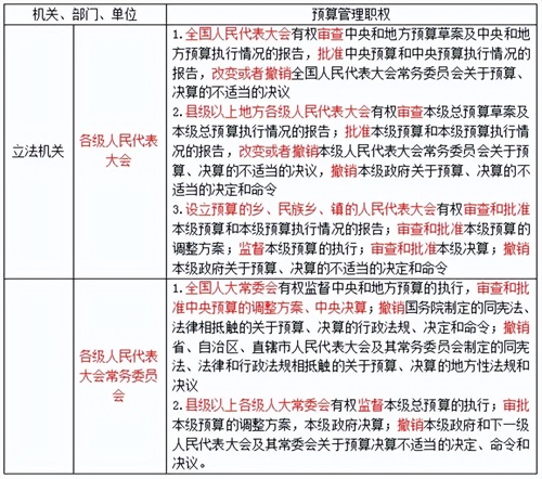 《中华人民共和国预算法》对立法机关、各级政府、政府财政主管部门和预算执行部门、单位的预算管理职权做了明确规定。