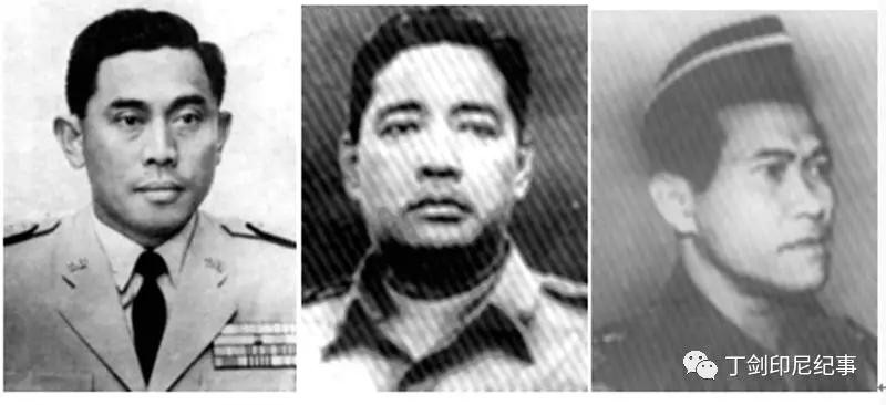 “九三零事件”遇害将领中的其中三人。自左至右:陆军参谋长亚尼中将,第二副参谋长苏巴多少将,第二副参谋长哈约诺少将。