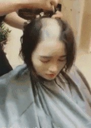 33.美女有啥事想不开的,非要剃光头。