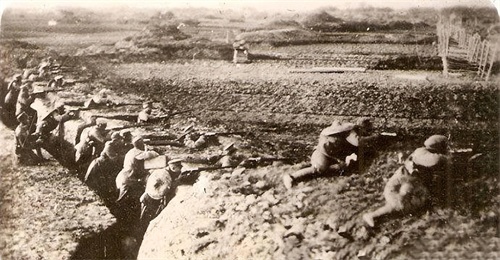 (正在工事中抵御日军的国军)