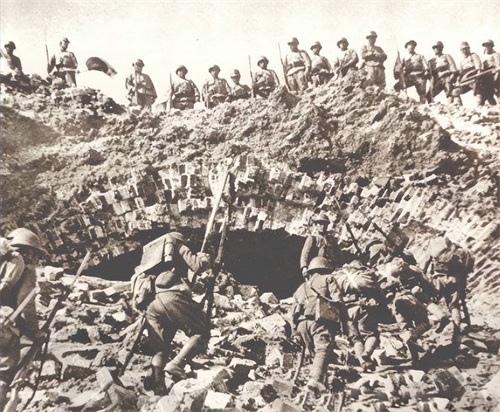 (被炮火击中的国军阵地)