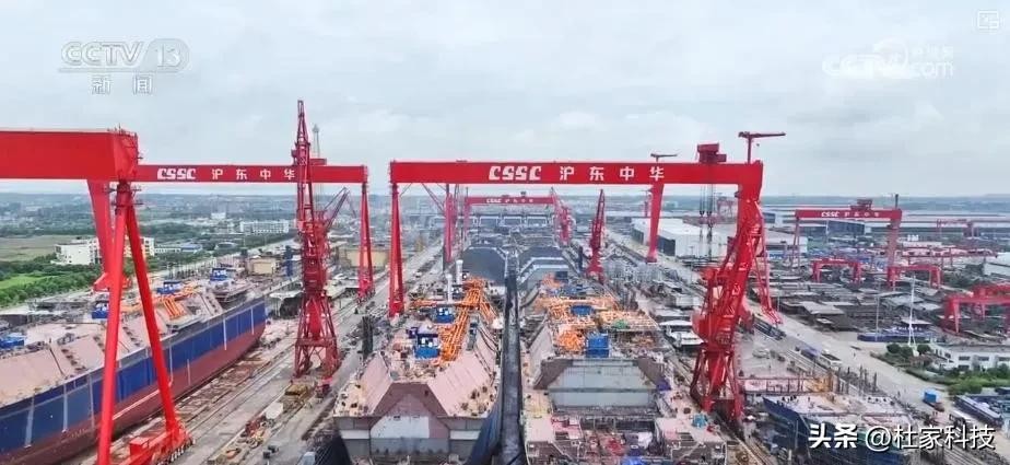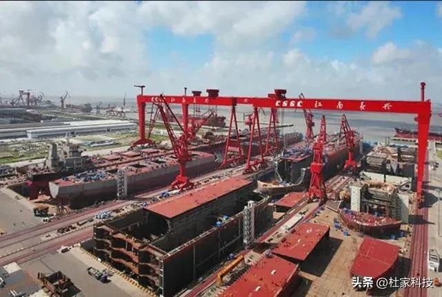 今年,上海沪东中华造船厂甚至同时建造19艘LNG运输船,每一艘都几万吨,这样的能力,足够支撑我们同时建造2艘航母!