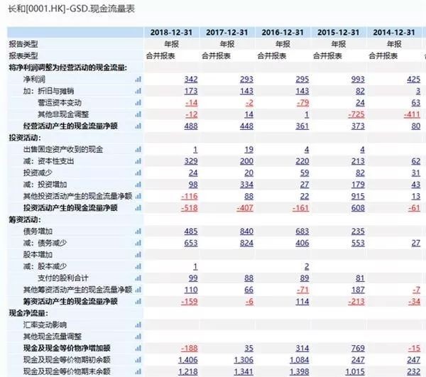 但让人意外的是,长和的现金流量表下有多项科目却出现负增长,如投资活动现金流量减少590.79亿港元。