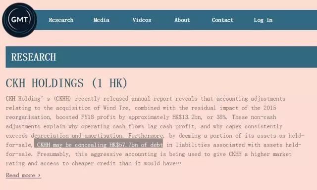 GMT指出,长和激进的会计方法正被用来为其带来更高的市场评级,以及获得比原本更廉价的信贷。