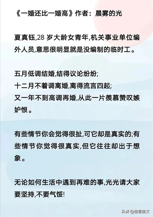 婚姻本来就充满了不确定因素,谁能保证能遇到一个能幸福度过一生的人呢?所以第一婚不如意的话,那就去找第二春好了,只是需要一些勇气罢了。