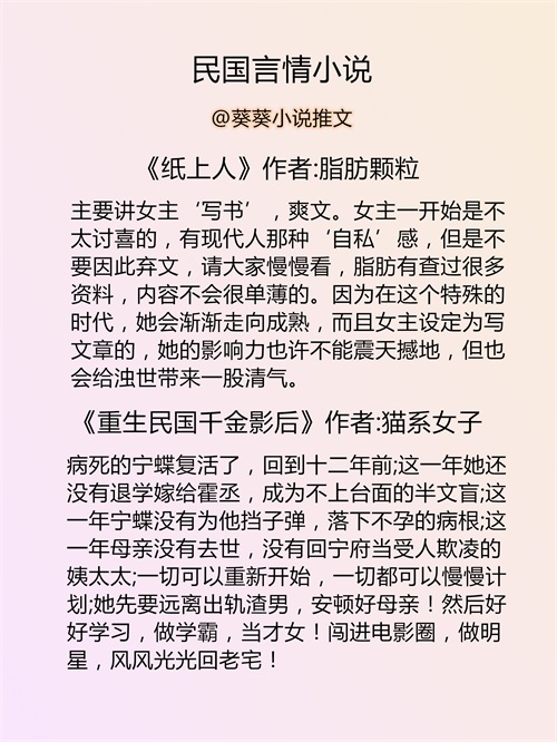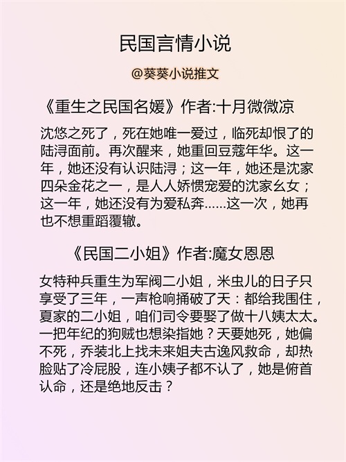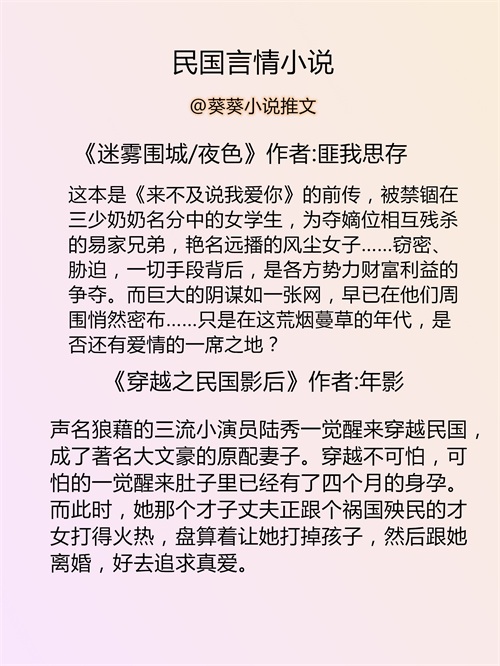 葵葵推文:民国言情小说推荐丨民国文推文书单