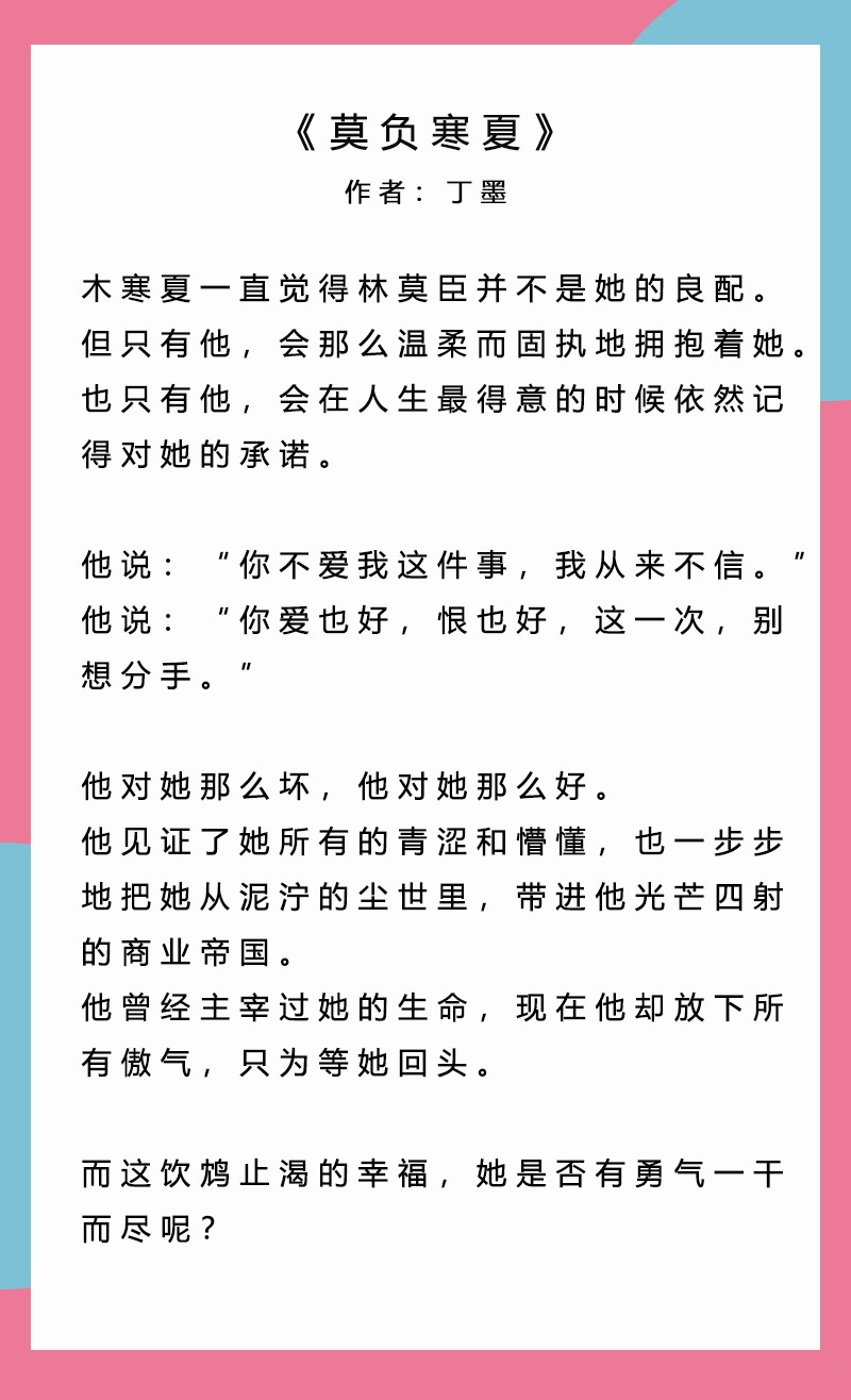 推荐5本我最爱的别后重逢小说,《莫负寒夏》、《于尘埃处》